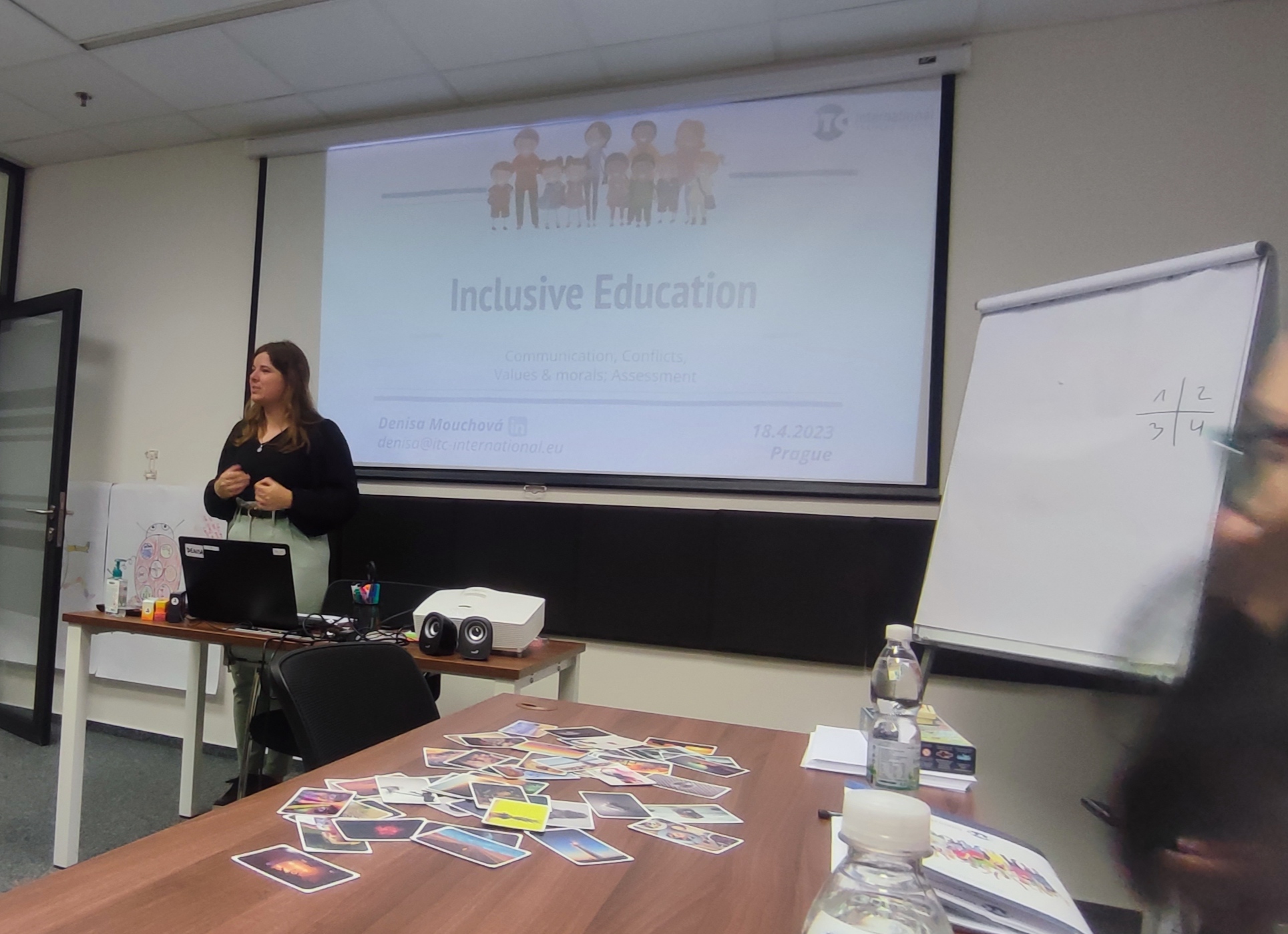 Velaquí varias imaxes da 2ª xornada do curso sobre inclusión educativa que María José Gil está a realizar en Praga. As actividades de hoxe xiraron en torno á comunicación non violenta. Despois de reflexionar sobre cómo lidiar con conflitos, métodos comunicativos e a educación en valores e moral, a nosa teacher Mª José afondou, xunto cos seus compañeiros de curso, na avaliación do alumnado e cómo proporcionar feedback axeitado tendo en conta as características de cada alumno.